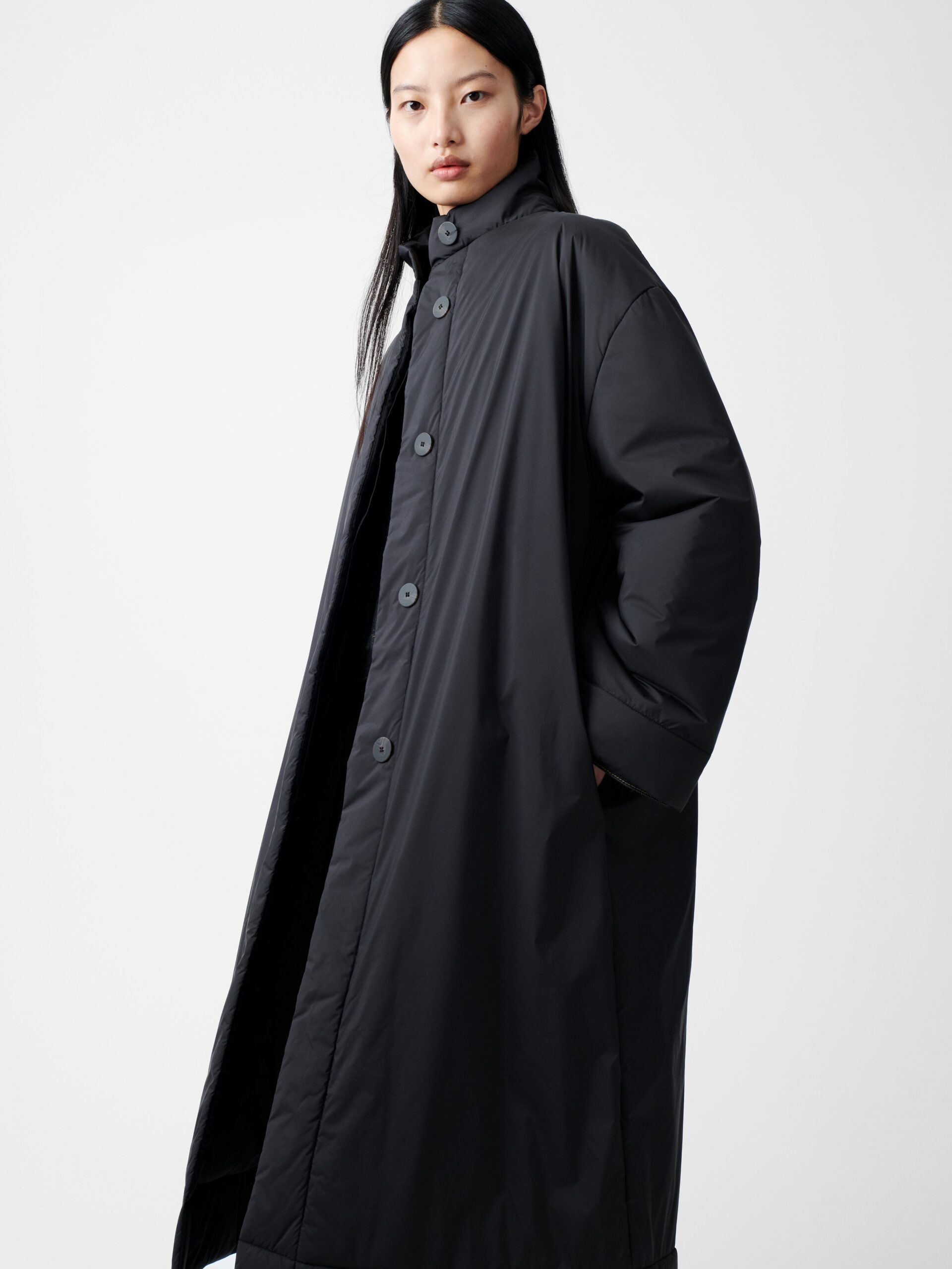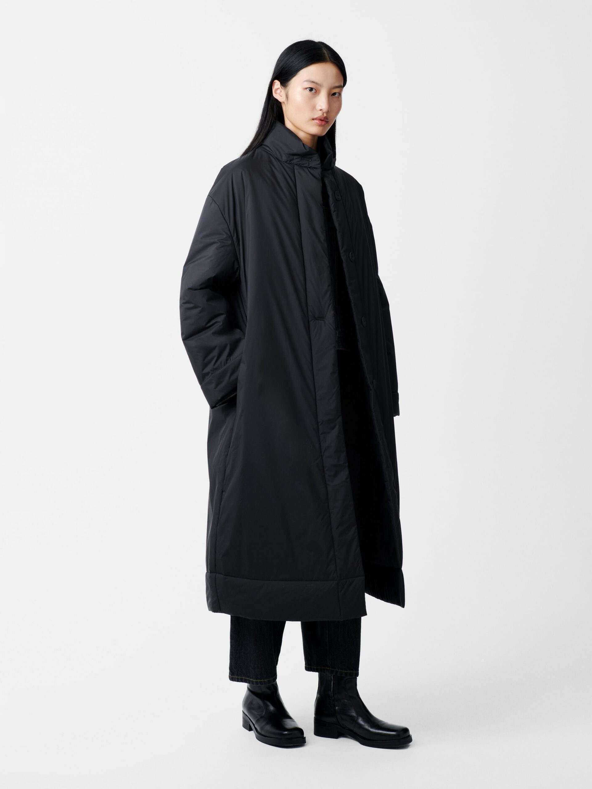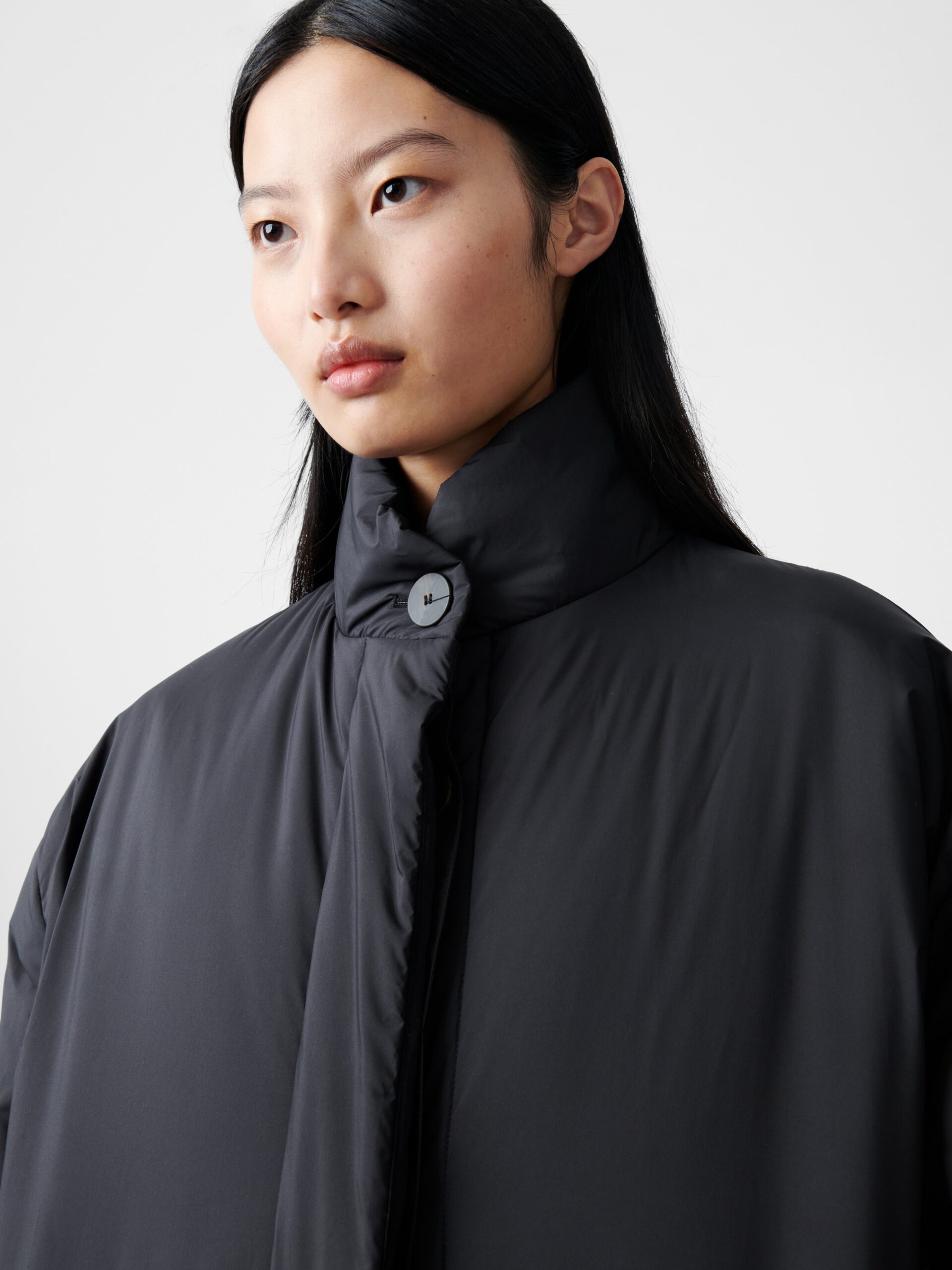 The oversized, cocooning silhouette of the Pallan is a play on our best-selling Kariba. Its clean exterior is achieved through a hidden placket and short collar, while its voluminous fit is perfect for layering. It’s cut from a powder-coated parachute nylon, and filled with Ecodown fibres for superior heat retention.