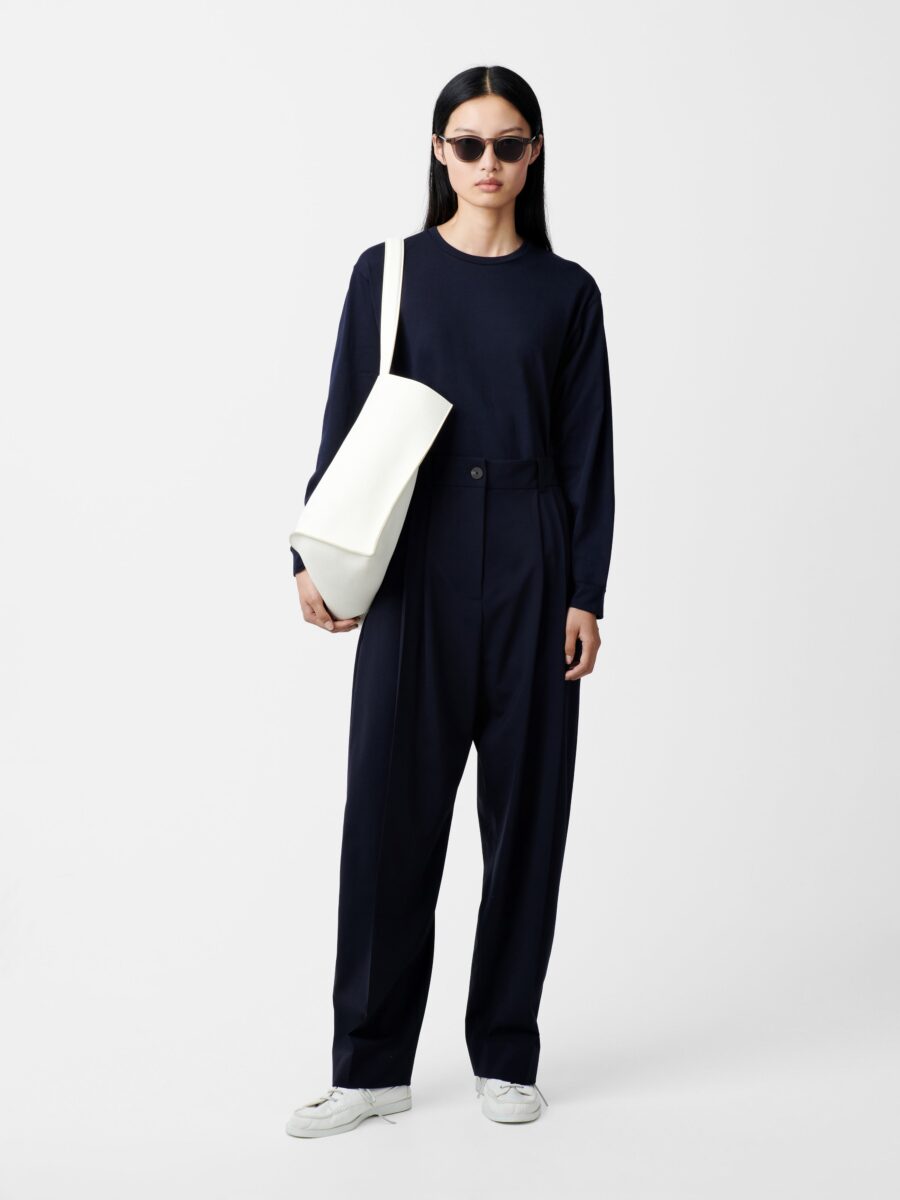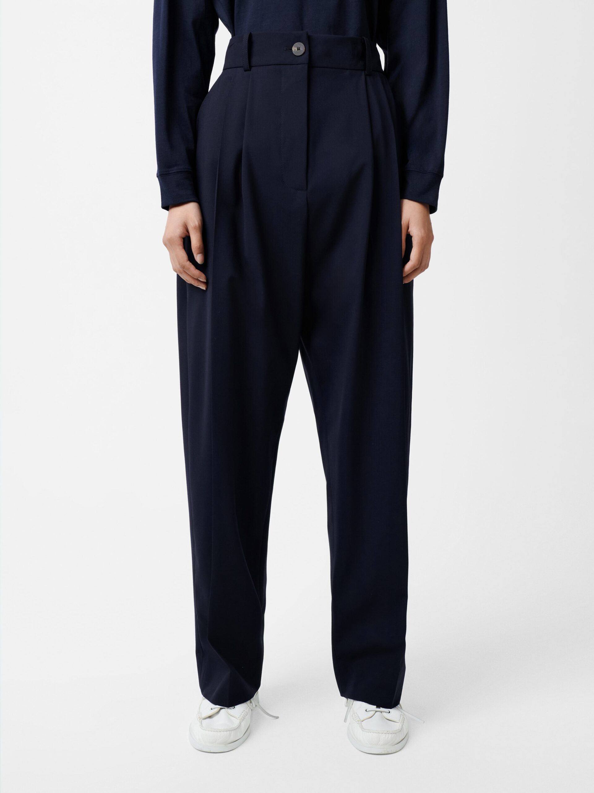 Cut from our signature Tropical Wool fabric, the classic Acuna pants are a Studio Nicholson staple for good reason. They combine a high rise with a wide, flowing leg, which is slightly elongated to allow the fabric to fold and pool.