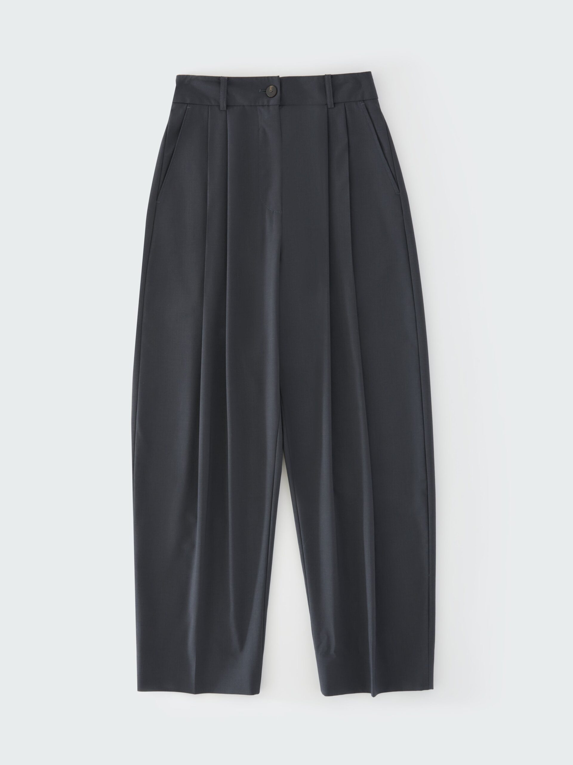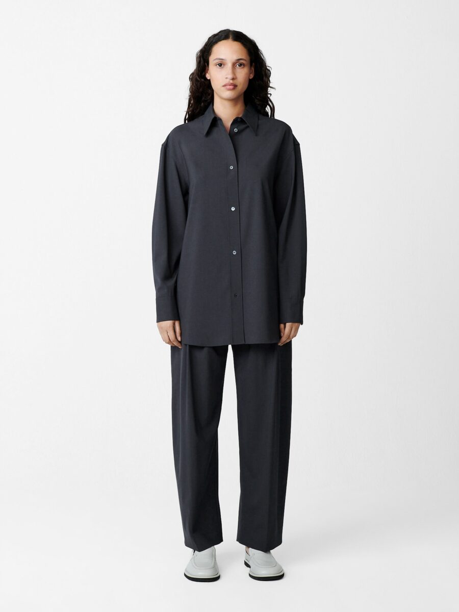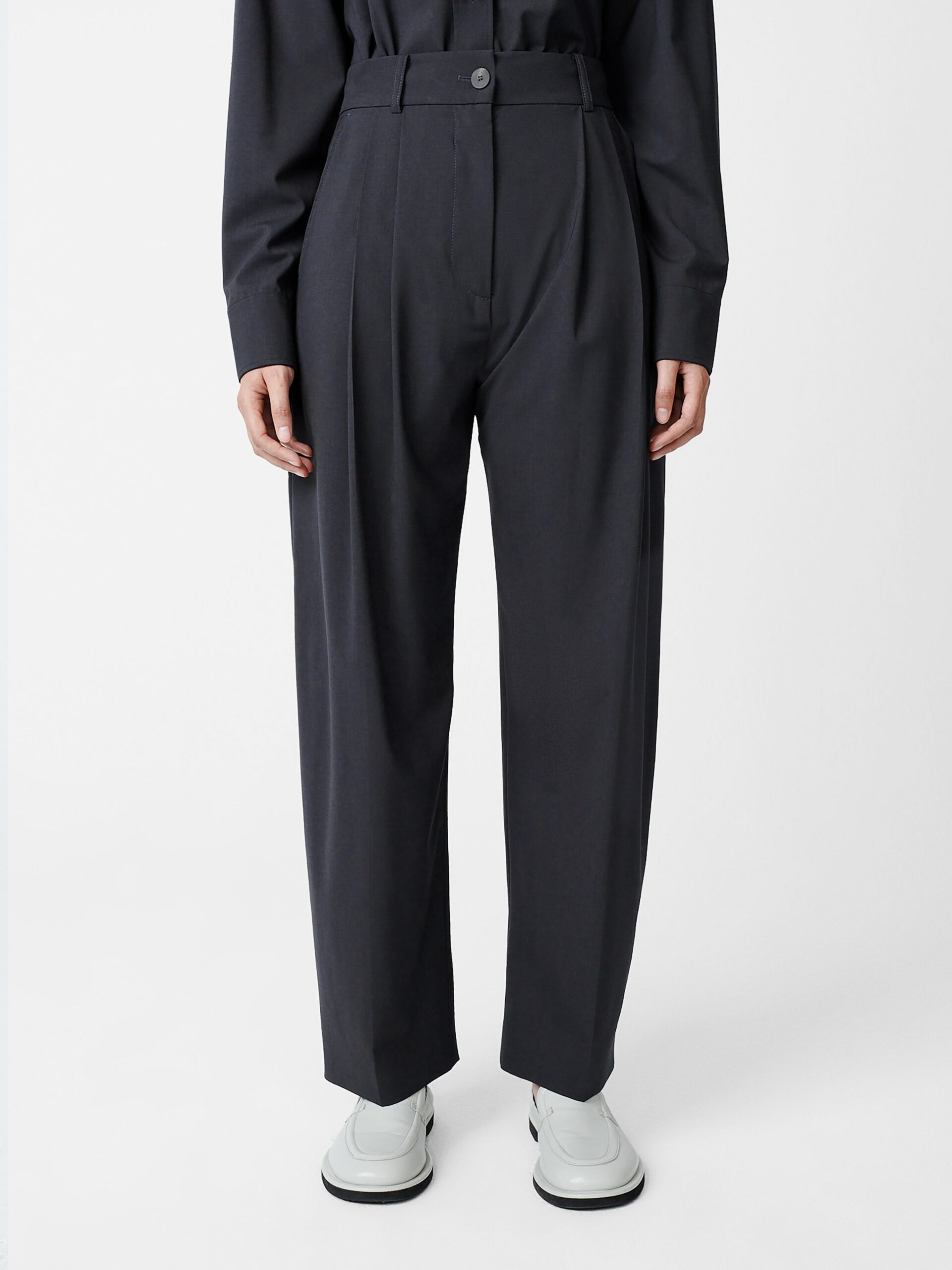 Cut from our signature Tropical Wool fabric, the classic Acuna pants are a Studio Nicholson staple for good reason. They combine a high rise with a wide, flowing leg, which is slightly elongated to allow the fabric to fold and pool.