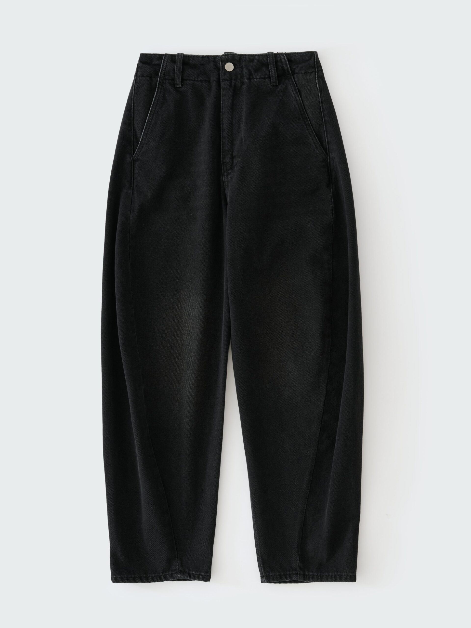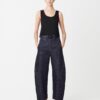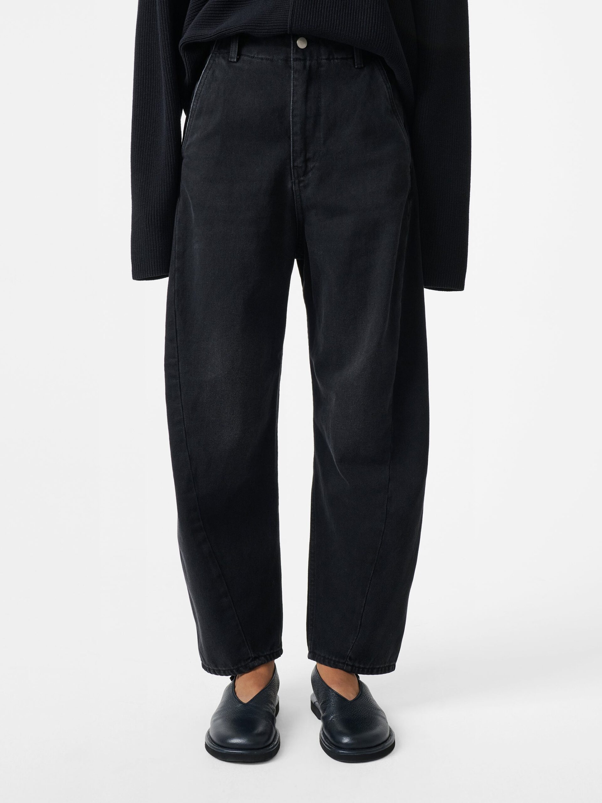 Five-pocket jeans with added volume, Akerman creates a distinctive silhouette with its curved leg and cropped length. They are made from a denim that’s been woven from regenerative cotton in a rich washed-black shade.