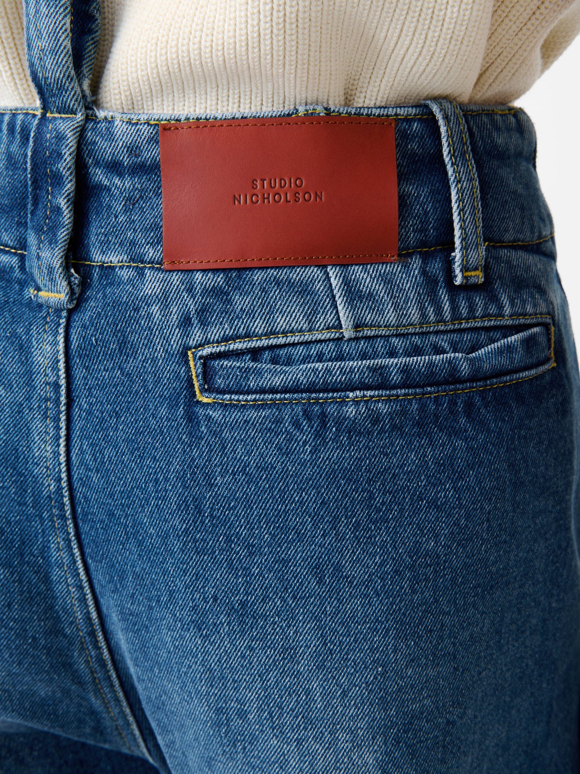Five-pocket jeans with added volume, Akerman creates a distinctive silhouette with its curved leg and cropped length. They are made from a denim that’s been woven from regenerative cotton.
