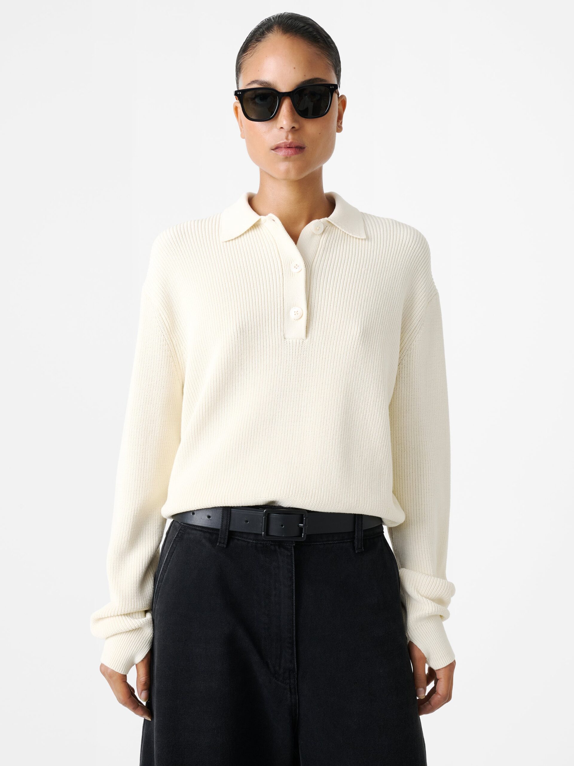 Following a classic polo-shirt silhouette, the Chesapeake is made from dry cotton that’s constructed in a 7-gauge ribbed knit – imbuing it with a bouncy tactility. This long-sleeved style is finished with a neat contrast collar and a buttoned placket.