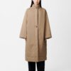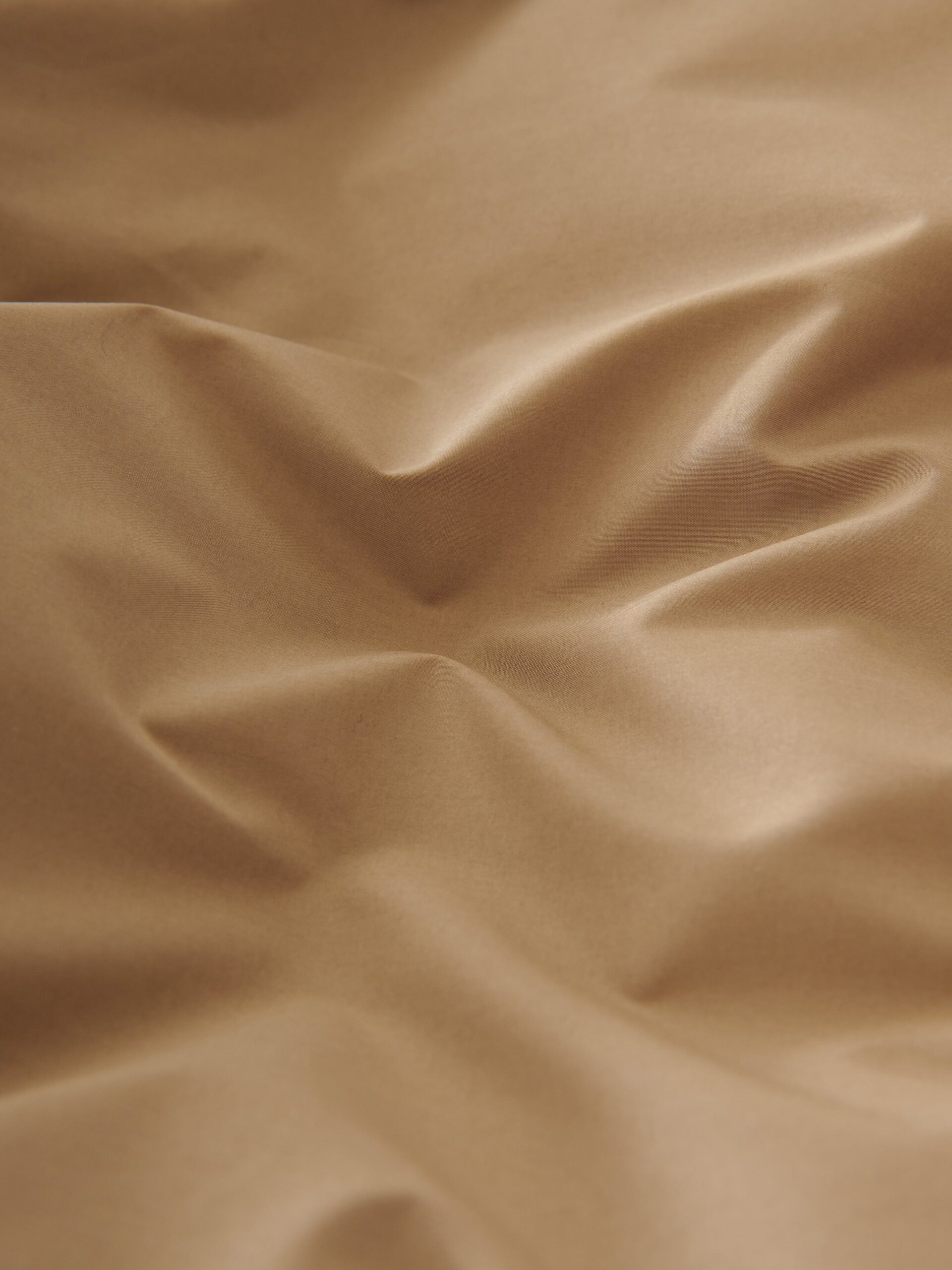 The Dana jacket nods to style codes of retro 1970s skiwear, seen in the large hood and soft, boxy construction. A prominent single stitch winds along the back to emulate the curved yoke reminiscent of western denim jackets, lending textural interest to the showerproof tech poly outer.