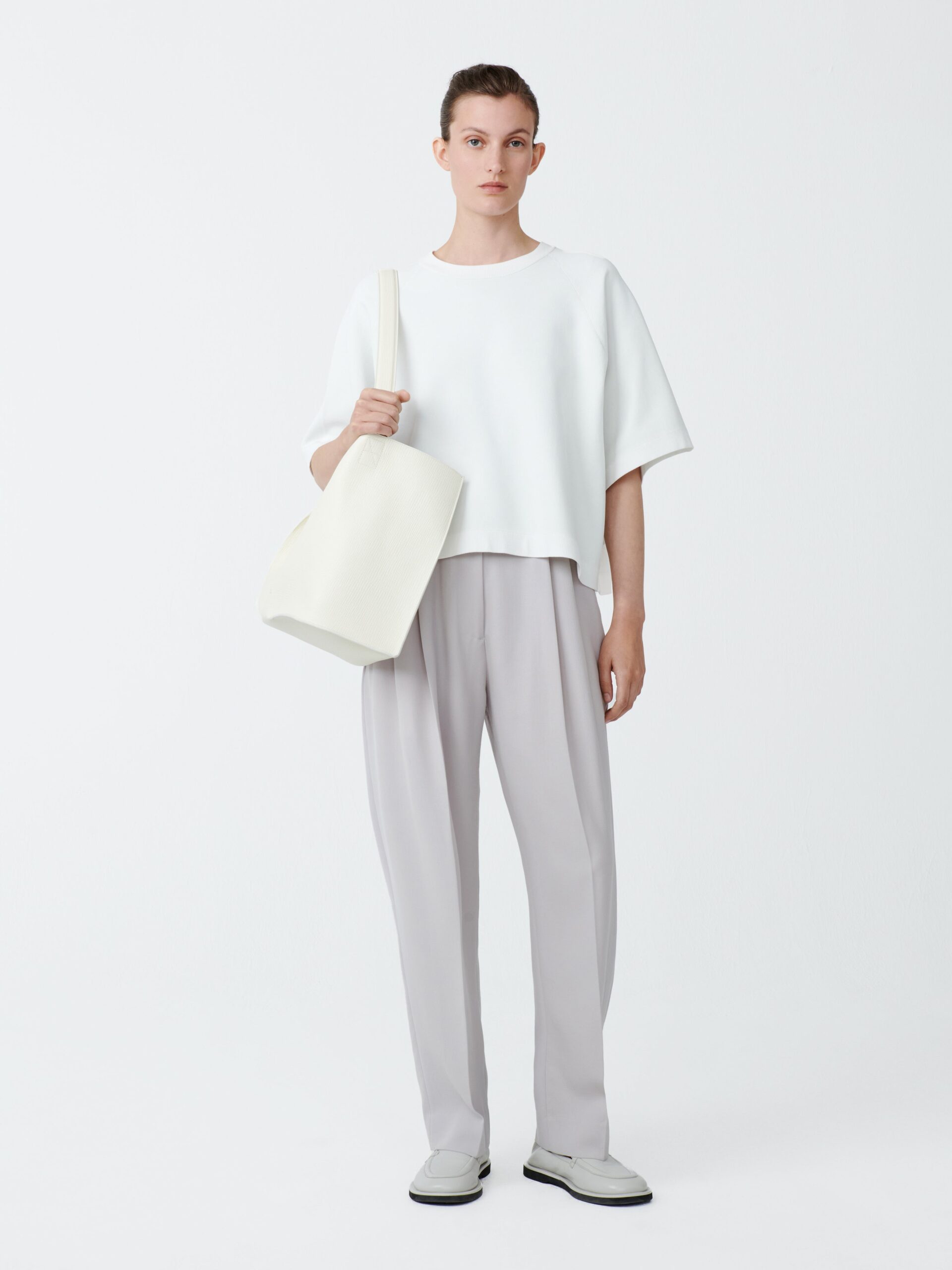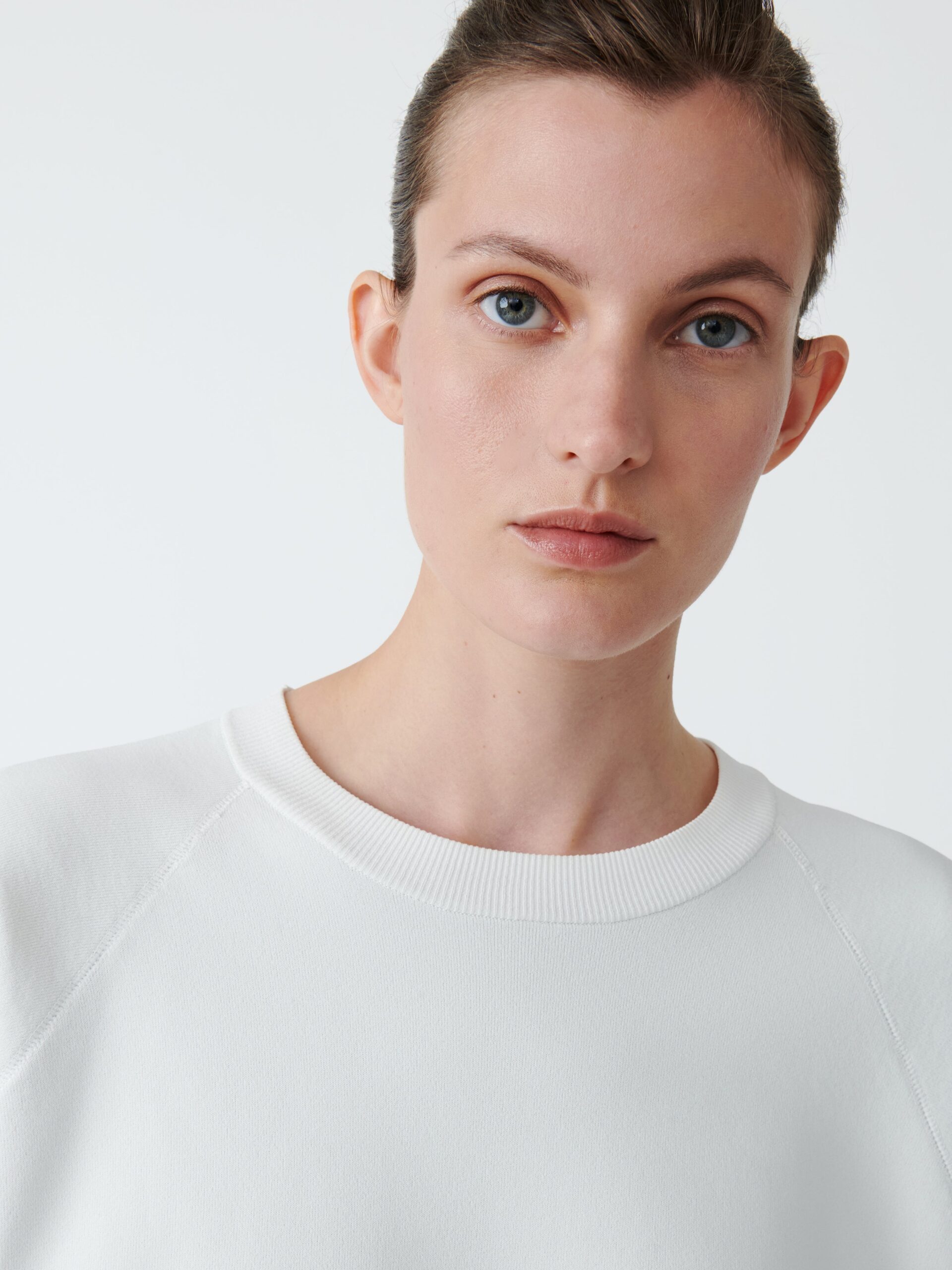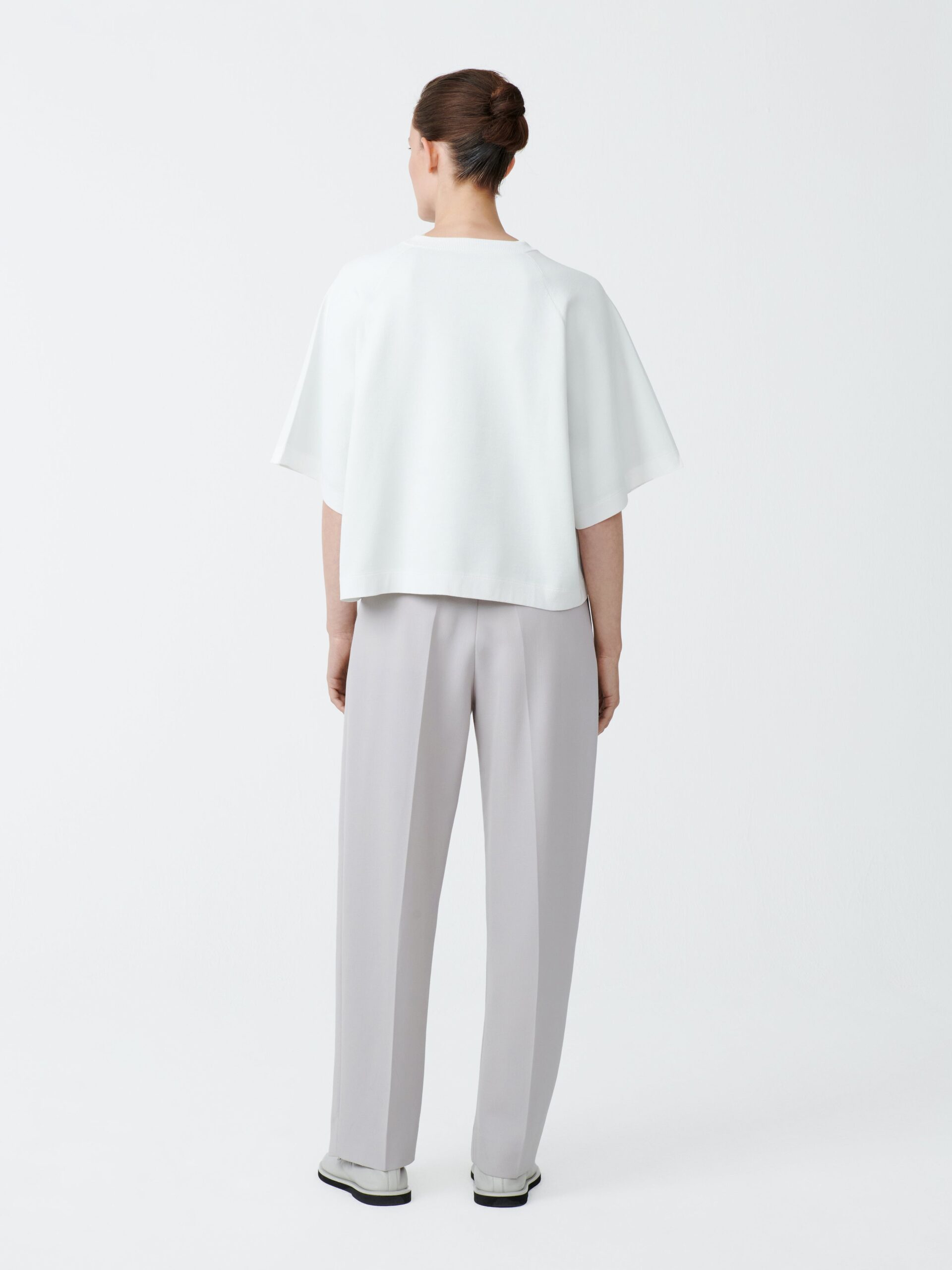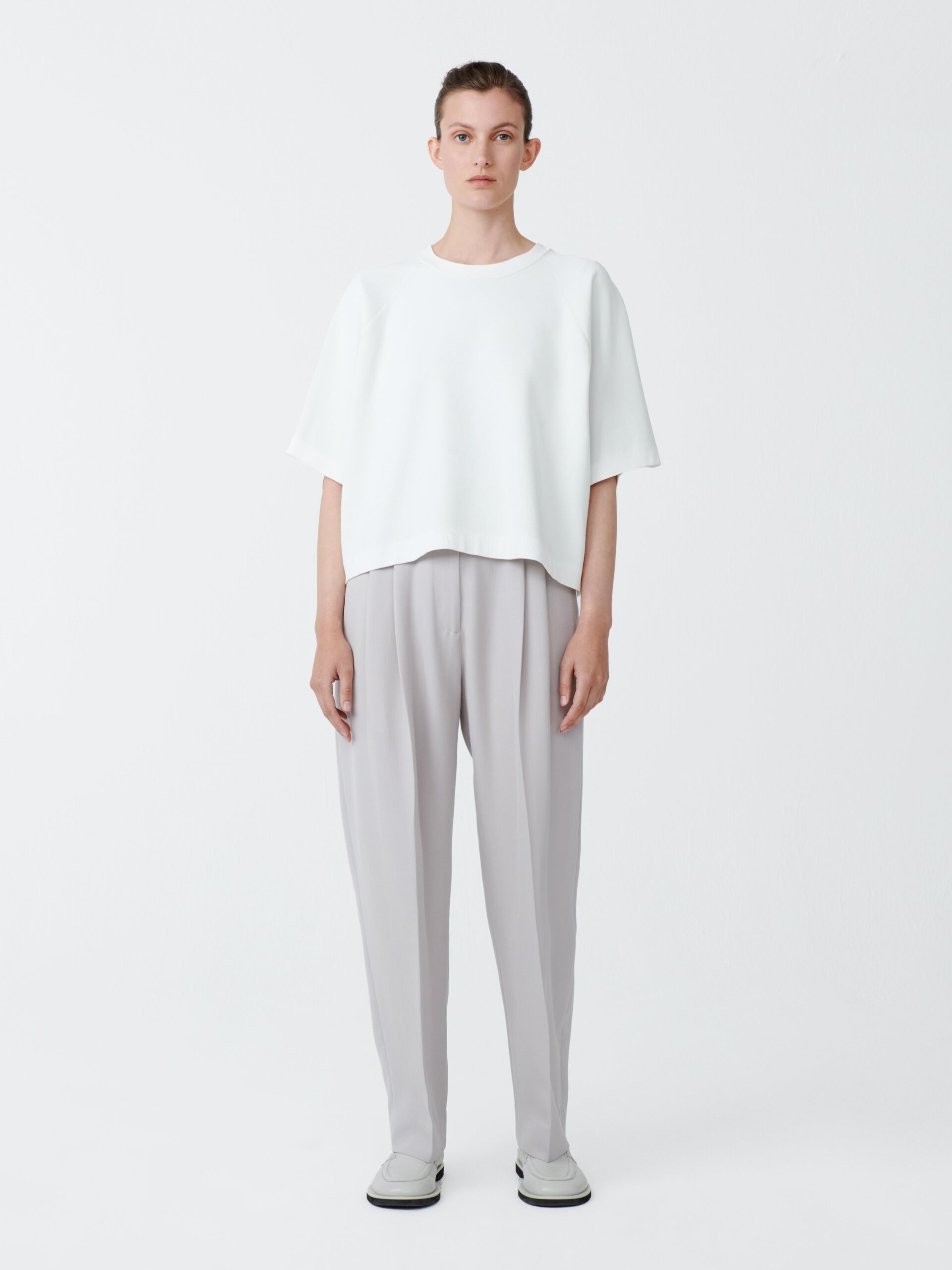 The Mata is our take on a classic short-sleeved sweatshirt, featuring a voluminous, boxy silhouette with raglan sleeves and a cropped length. Cut from our Sporty Poly Viscose chosen for its sculptural qualities and spongy hand feel.