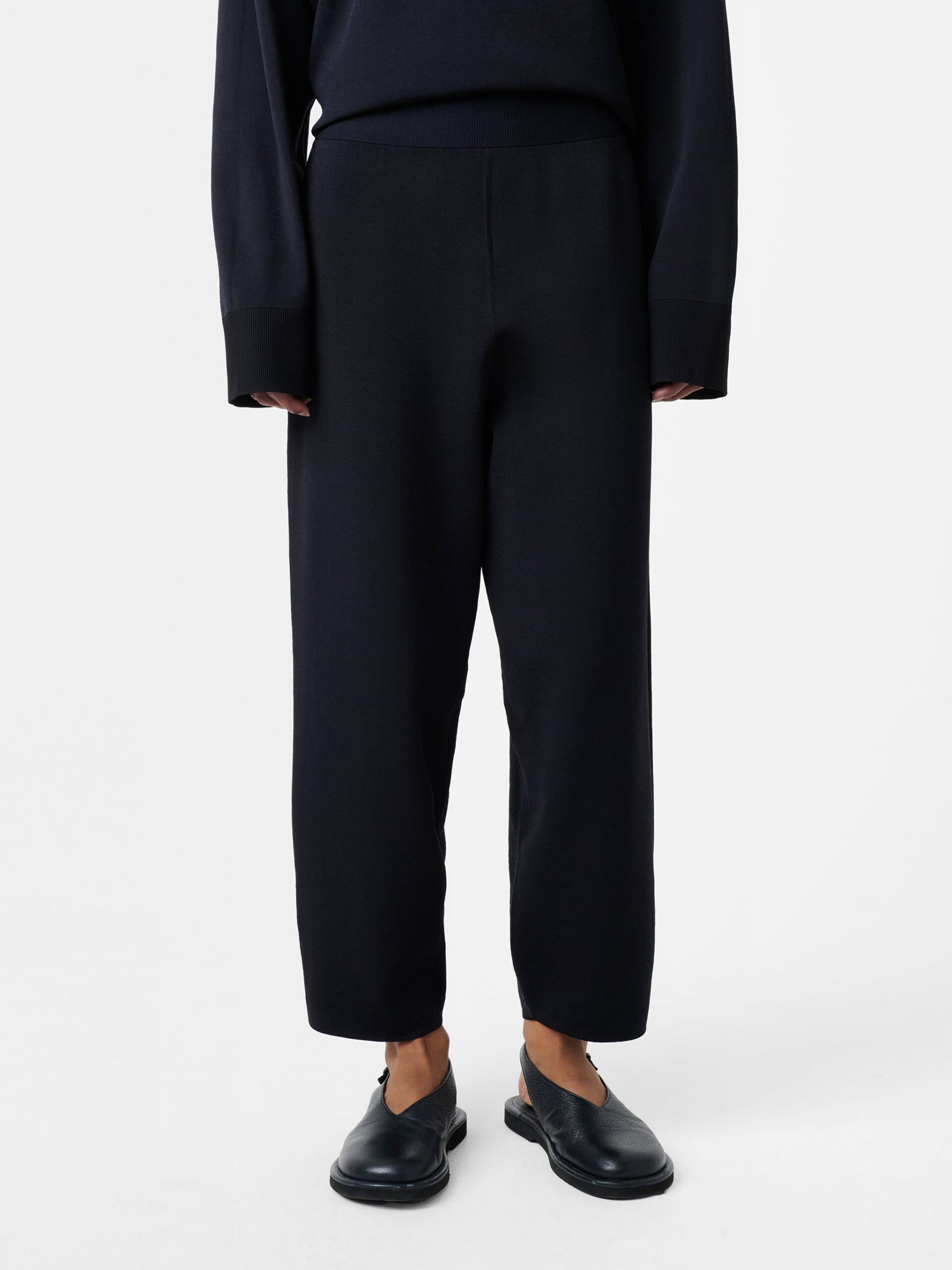 The Moura Pant applies a gently rounded shape and tapered leg to a classic track pant. Cut in our Sporty Poly Viscose, a fabric chosen for its sculptural qualities and spongy hand feel.