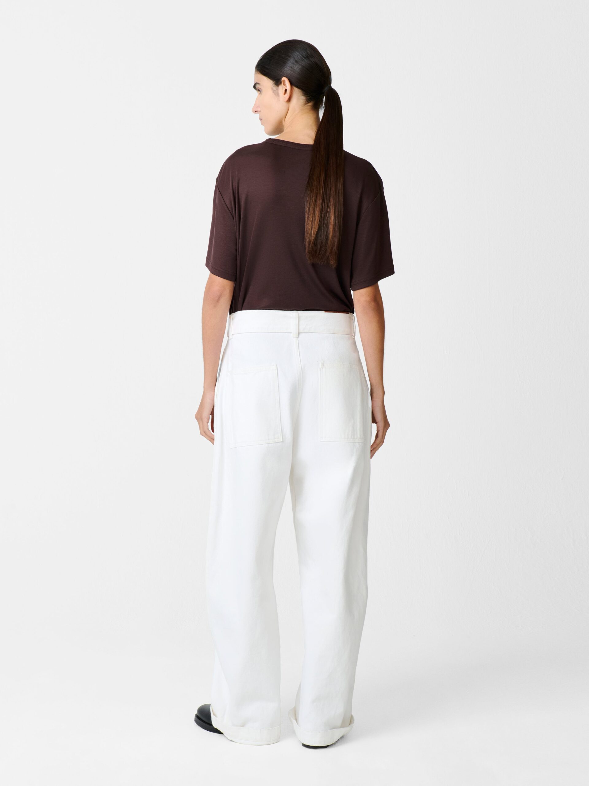 An easy fitting t-shirt cut from a fluid, feminine lyocell jersey, Rond has a wide sleeve and a dropped shoulder. Its relaxed shape is complemented by the fabric’s drapey character.