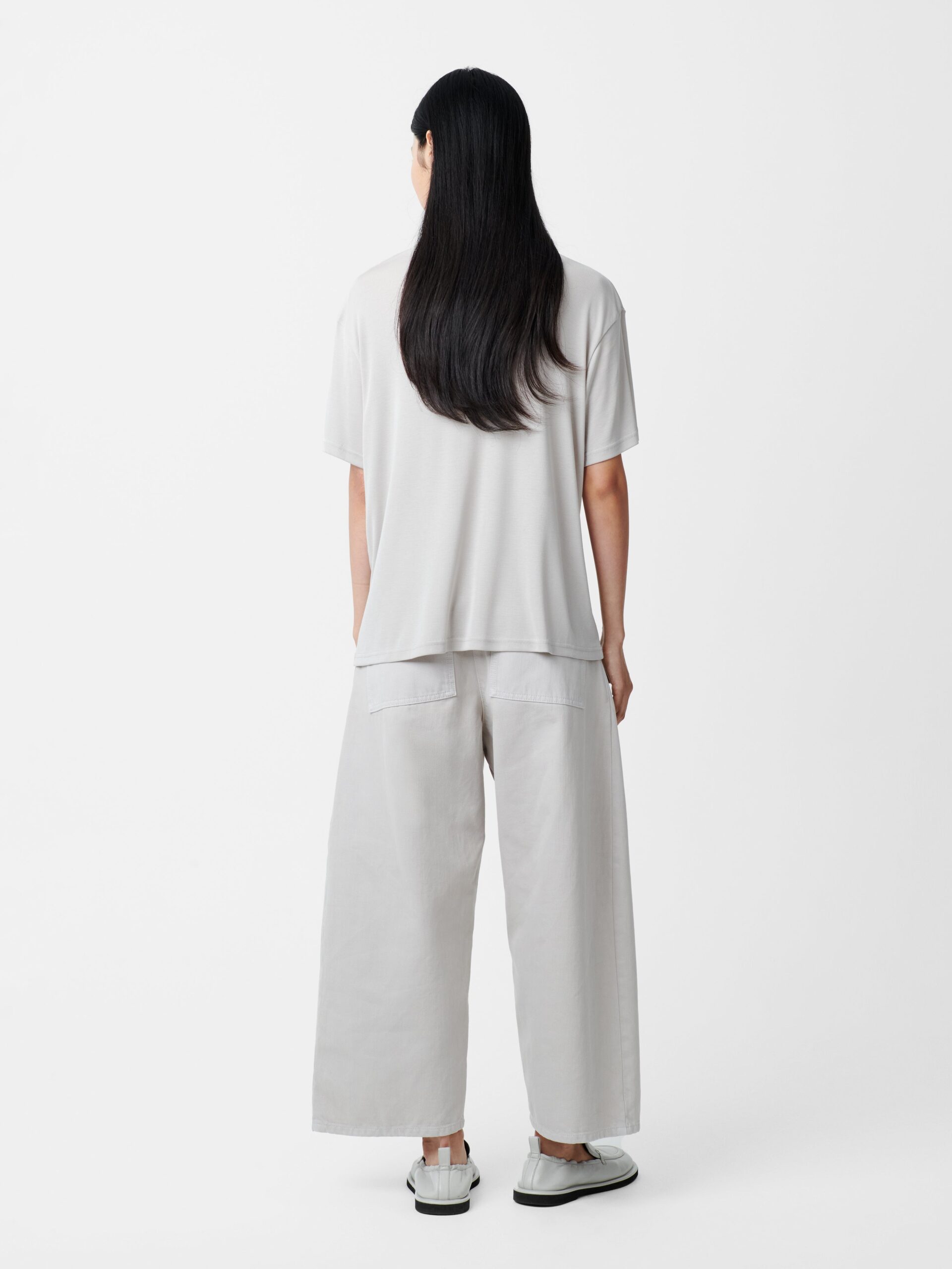 An easy fitting t-shirt cut from a fluid, feminine lyocell jersey, Rond has a wide sleeve and a dropped shoulder. Its relaxed shape is complemented by the fabric’s drapey character.