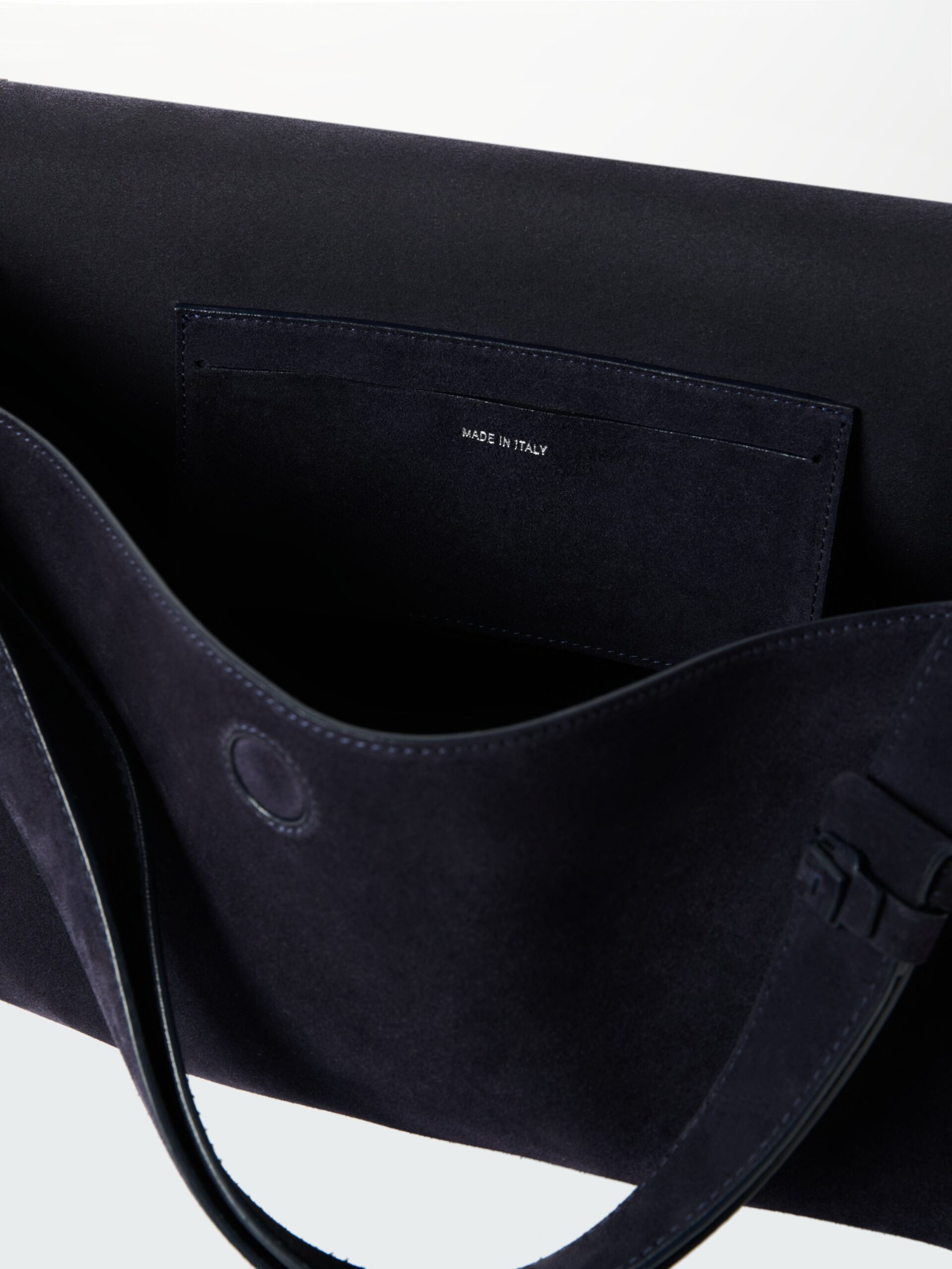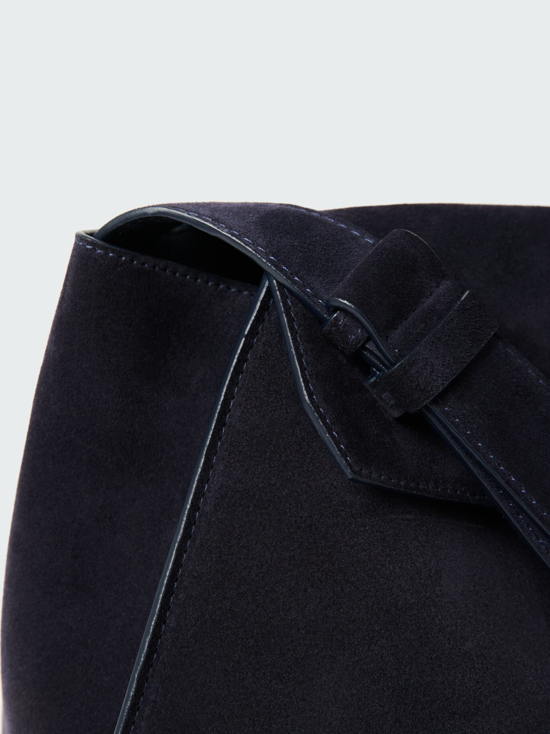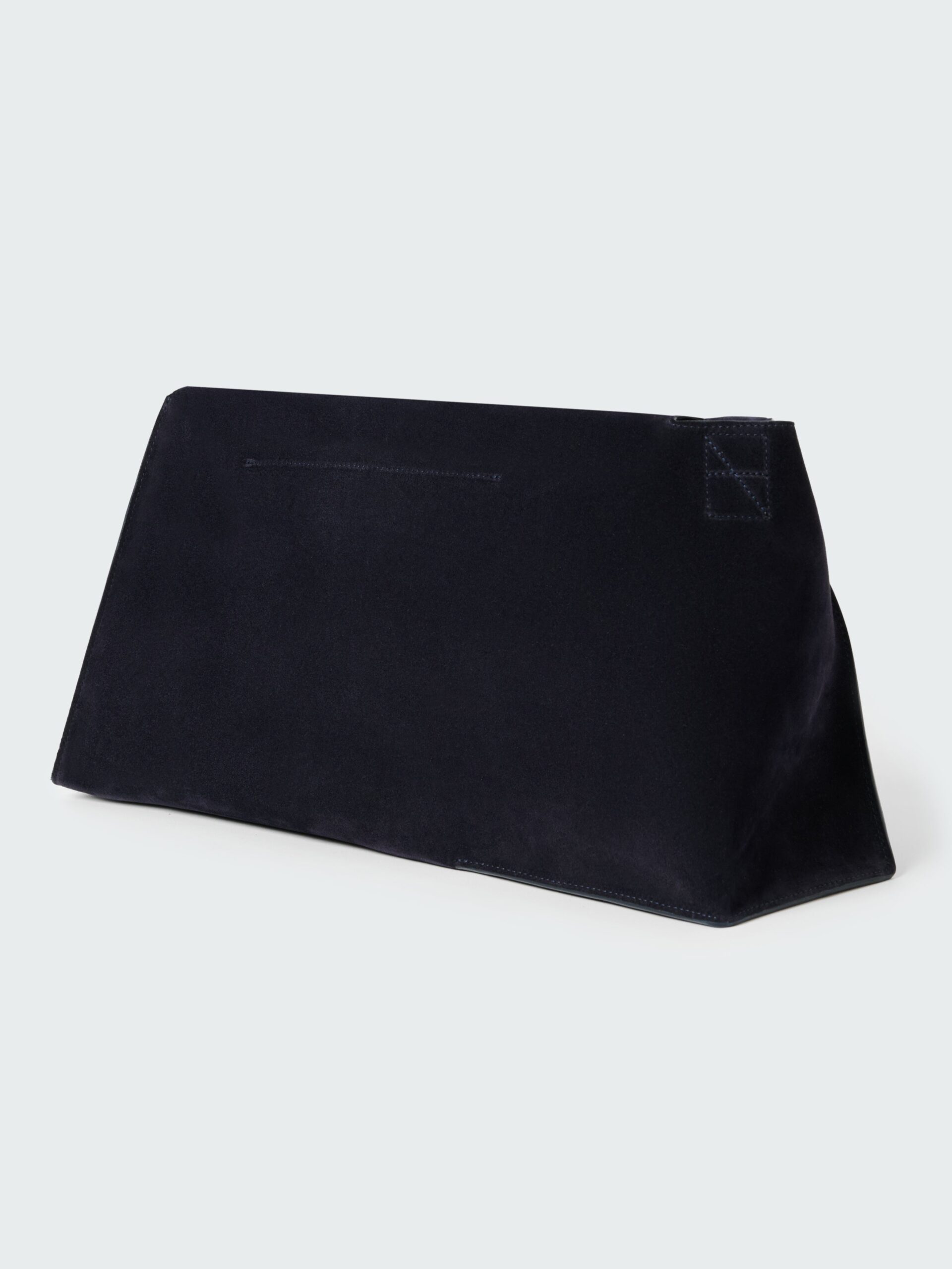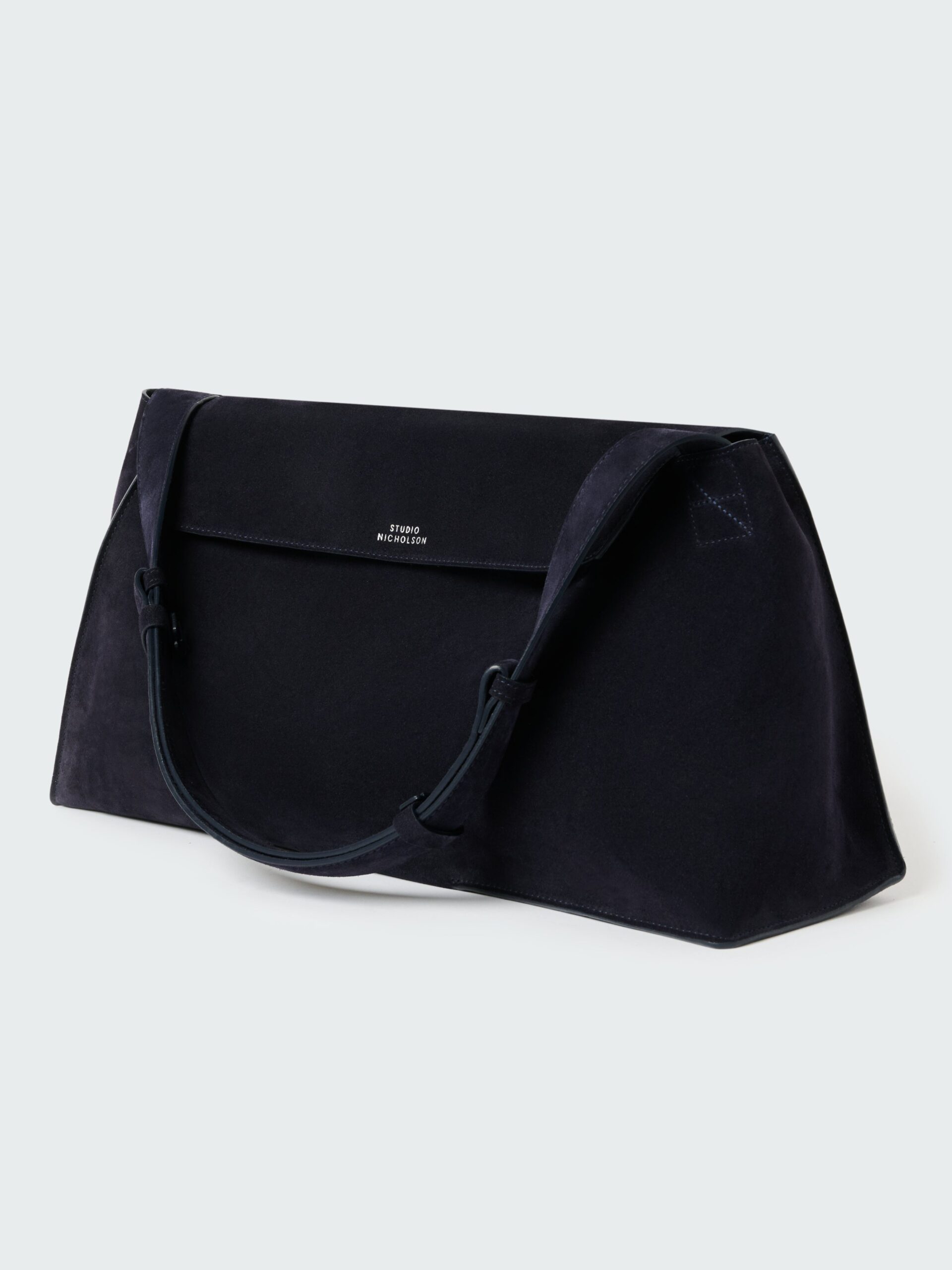 The Shiboru – meaning ‘to squeeze’ in Japanese – offers a relaxed take on a trapezium form. The construction combines perpendicular lines with the curved, permitting the bag to slouch when worn. Just two corners are fully seamed with a hand-painted edge whilst an adjustable shoulder strap is secured from the other opposing curved corners. The Shiboru’s folded concealed magnetic closure further allows the structure to determine its functionality.