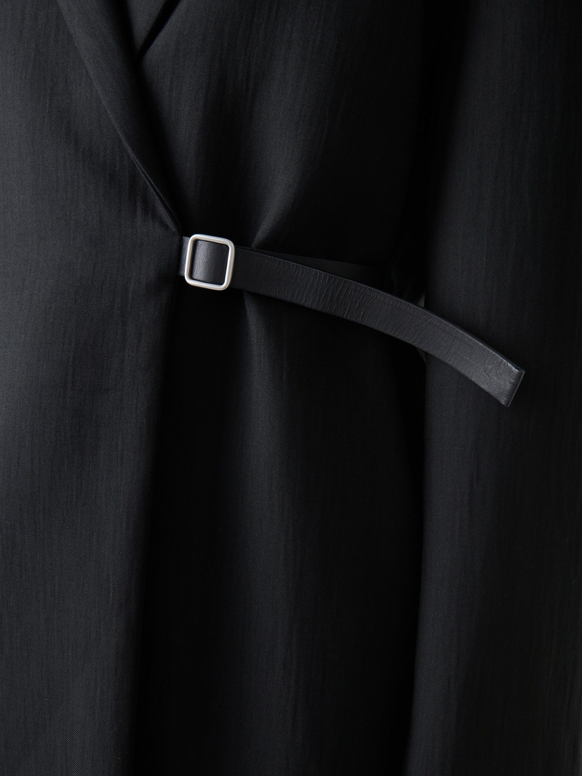 The Silas jacket is fitted with an adjustable belt strap to cinch the silhouette, adding a feminine nuance to the traditionally masculine cut. It’s tailored from a textured double cotton twill with rounded dropped shoulders to enhance the softened mood.