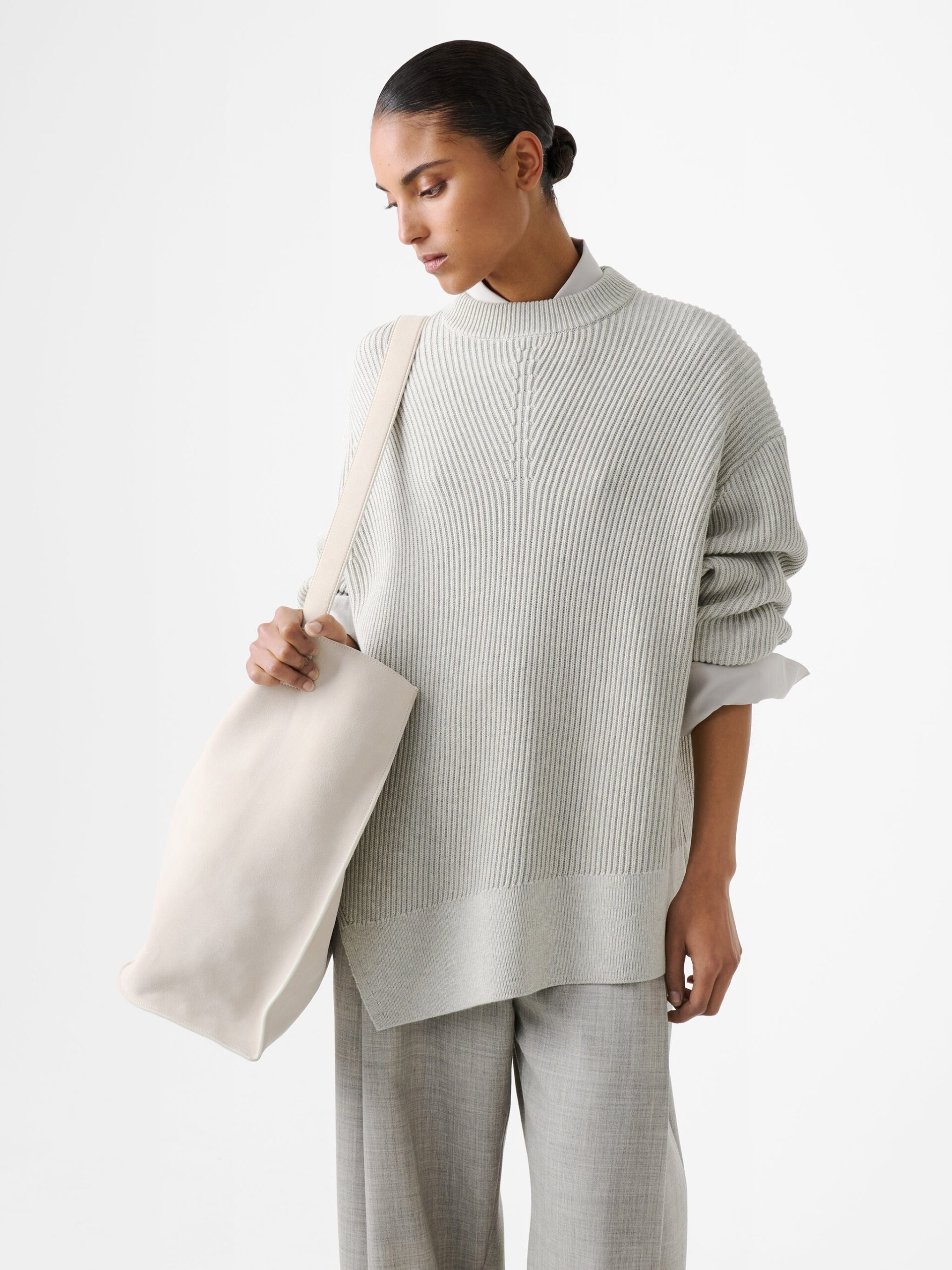 Furnished with easy dropped shoulders, the Verda is rendered from dry ribbed-knit cotton for a tactile hand feel. It’s shaped to an asymmetric hem with an unexpected side slit, imbuing it with a relaxed elegance.
