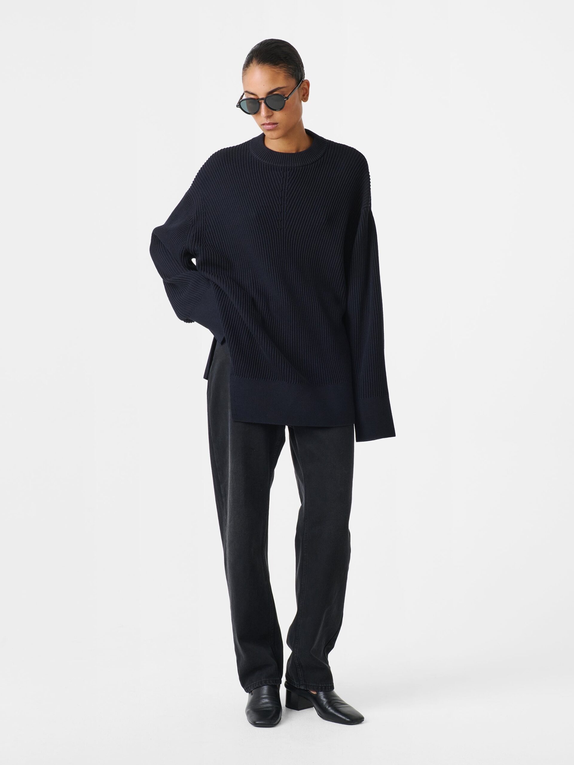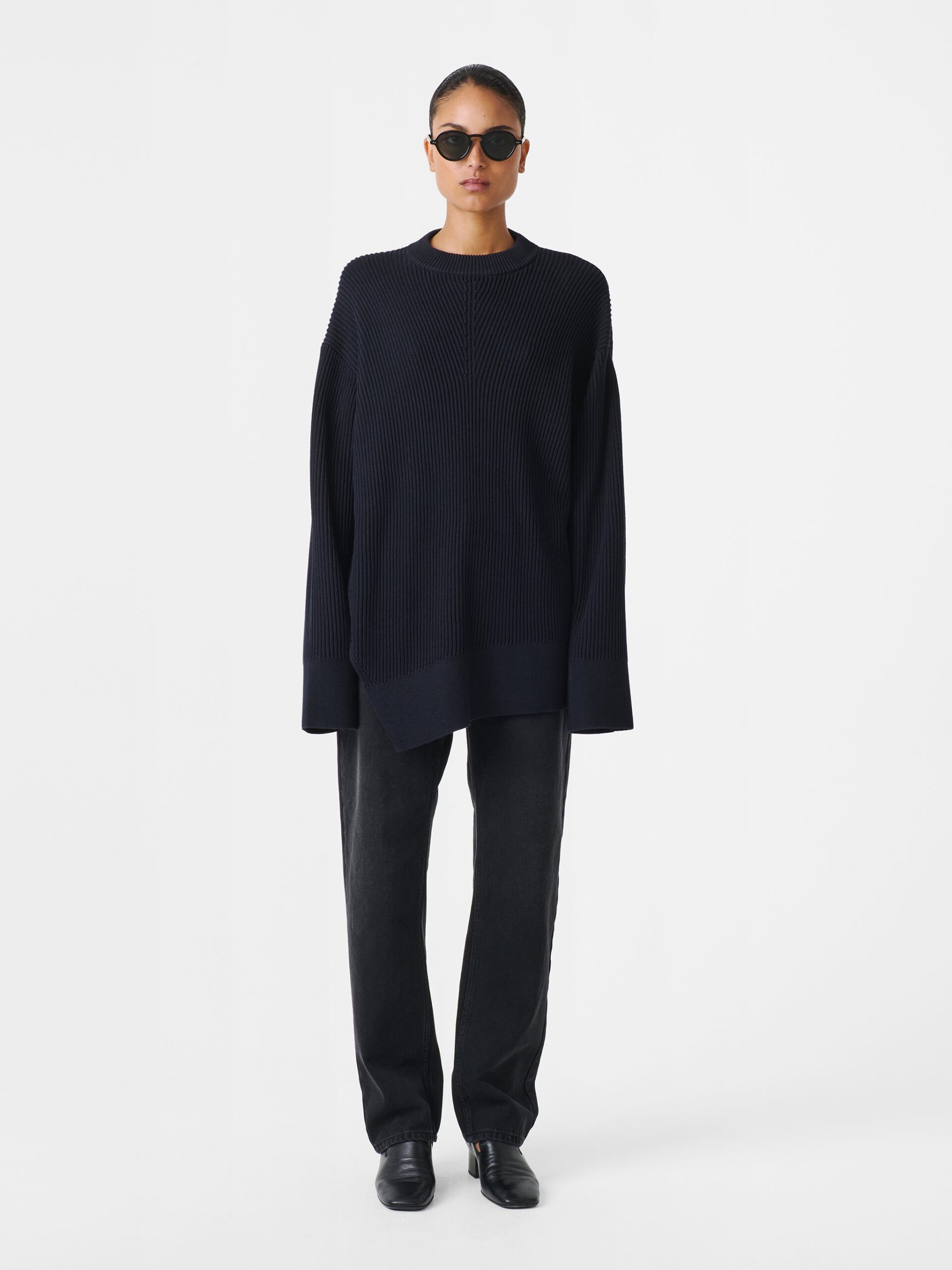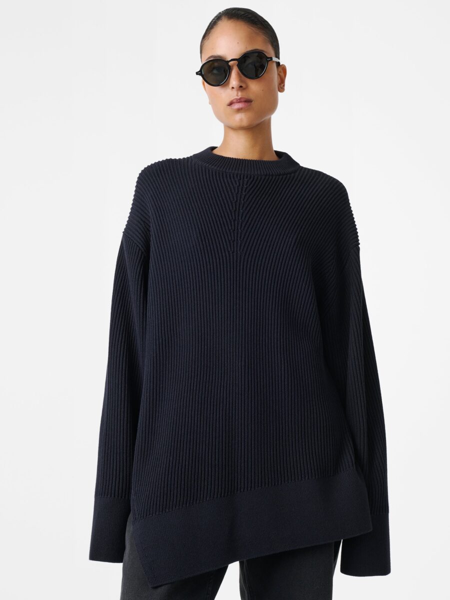 Furnished with easy dropped shoulders, the Verda is rendered from dry ribbed-knit cotton for a tactile hand feel. It’s shaped to an asymmetric hem with an unexpected side slit, imbuing it with a relaxed elegance.